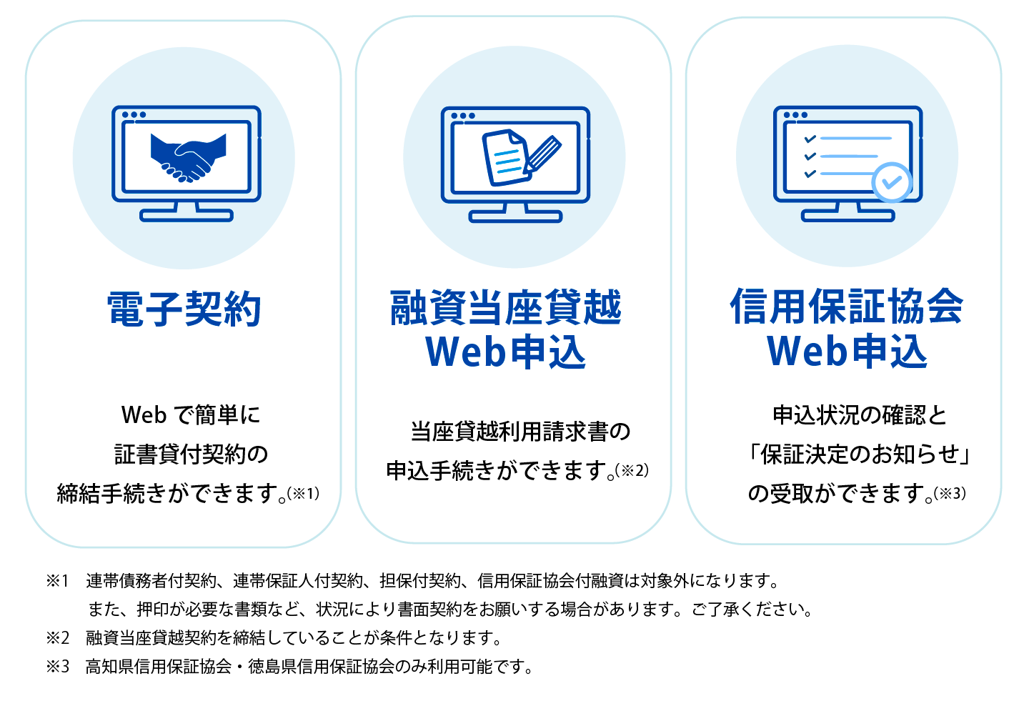 ※当座貸越については、入金希望日の3営業日前までにお申し込みが必要です。
