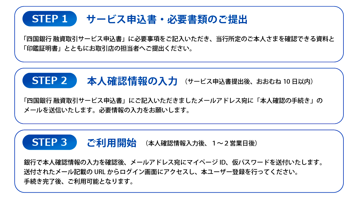 ※法人の場合、申込書に記入いただきました取引権限のある方のみが手続き可能です。