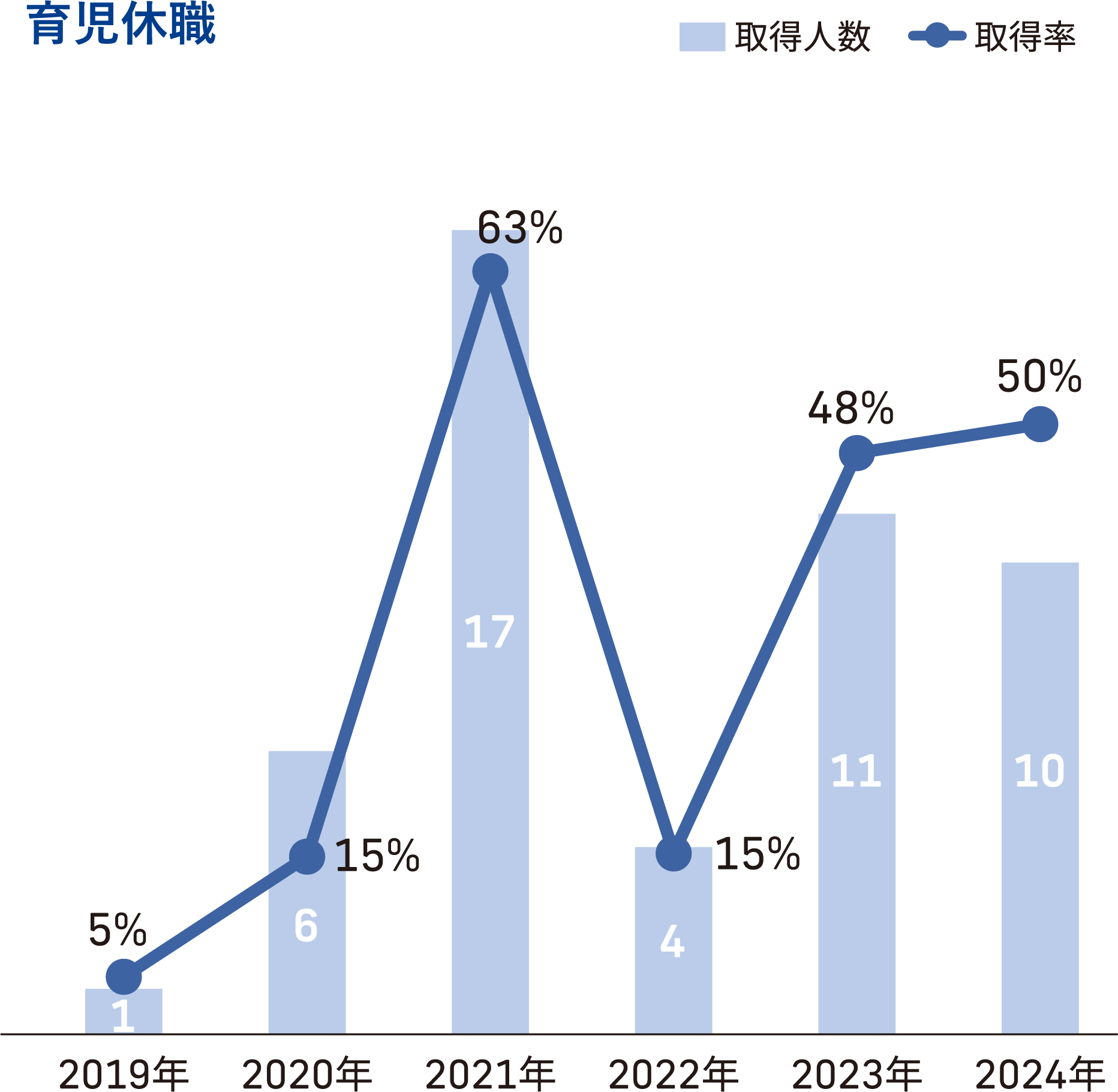 管理職への意識改革研修を通じて、誰もが気兼ねすることなく育休を取得できる企業文化の醸成に努めています。