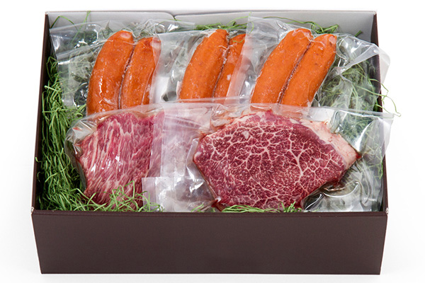 ステーキ100g×2パック、ソーセージ100g×2パック